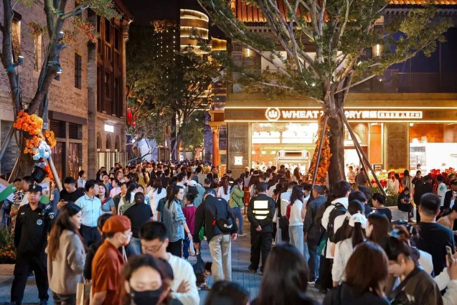 当千年商都邂逅国潮新生,“亳都·新象”正成为中秋国庆期间备受瞩目的城市会客厅。首日开街便引爆全城热情,客流量即突破10万人次,峰值超5000人在场,到10月3日下午16时许,累计人流35.4万,累计营业额350万。“亳都·新象”真正成了郑州人朋友圈中的“顶流打卡地”。