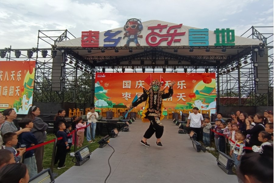 10月3日,笔者走进稷山国家板枣公园“国庆八天乐,枣园嗨翻天”主题活动现场。这场覆盖板枣欢乐世界、枣乡音乐营地、板枣博物馆等区域的农文旅融合盛宴,以昼夜差异化特色项目,吸引了众多游客慕名而来。据了解,双节前三天,共接待游客20000余人次。