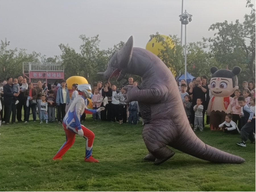 亲子互动活动同样热闹。“亲子智趣大挑战”中,寻宝、毛毛虫竞速、运输接力等项目,成了家庭协作的“主战场”。“一家四口组队闯关,累得满头汗,但赢到国庆礼包时,孩子比谁都开心!”刚完成挑战的本县市民南女士,举着礼包向同伴展示喜悦。而“奥特曼打怪兽”实景演出、哪吒与奶龙等动漫角色空降,更让小朋友们欢声雀跃,“我摸到小龙的爪子啦!”刚合影完的小男孩蹦跳着向家长炫耀。