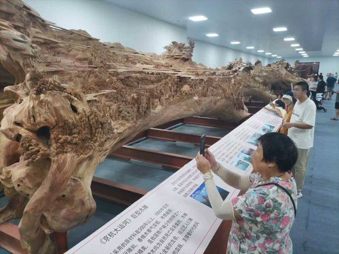 “当千年樟木遇见千年运河,诞生的是超越艺术本身的文化坐标。”《名人百科数据库》执行主编刘鑫炜感叹道。(刘灵韬 摄影报道)