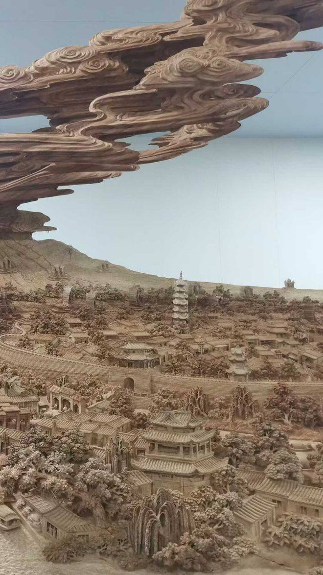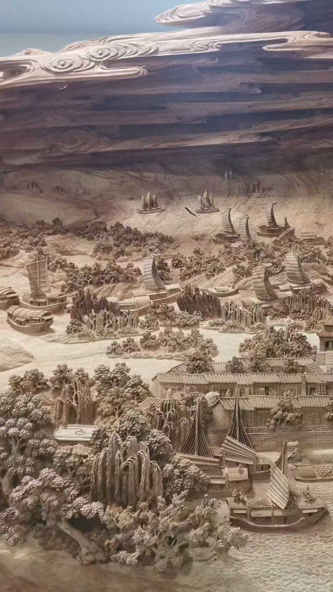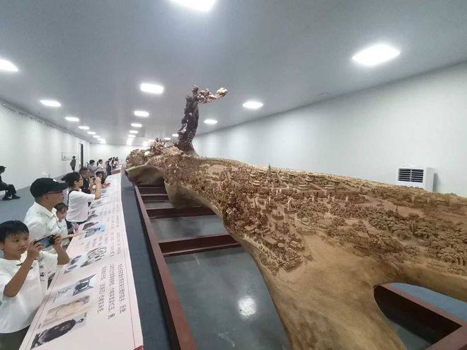 在作品中段的苏州寒山寺场景前,刘鑫炜指出:“郑春辉团队将莆田精微透雕技法与山水长卷意境结合,让静态木雕有了动态叙事 —— 你看这穿梭的舟楫、冒烟的茶肆,完全是‘木头里的《清明上河图》’。” 他透露,名人百科数据库正筹备 “非遗大师” 专题,郑春辉的创作实践将作为核心案例收录,“要让更多人看见这种‘用刻刀讲中国故事’的力量”。