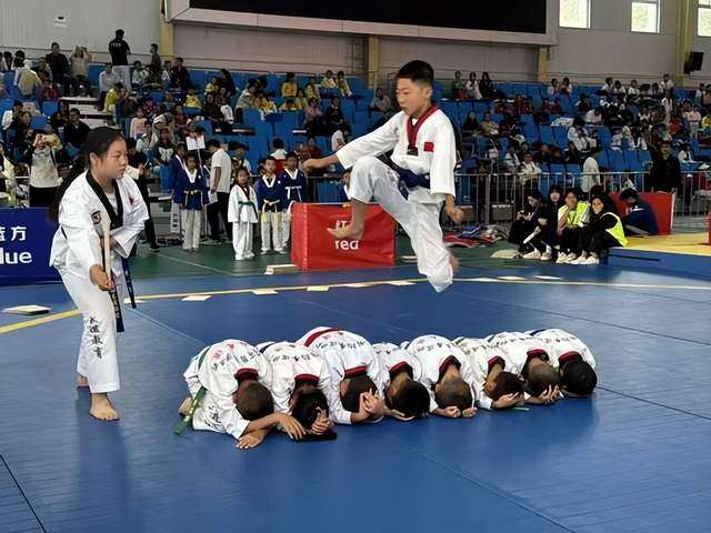 比赛现场,小选手们精神抖擞、步伐稳健地步入赛场。他们在礼仪、基本姿势、柔韧性、腿法、品势、实战与体能等多个方面展现出扎实的基本功与竞技素养。一招一式舒展有力,动作衔接流畅自然,刚柔并济之间,尽显武术与跆拳道的独特魅力。台下家长纷纷举起手机、相机,记录孩子们在赛场上的精彩表现。