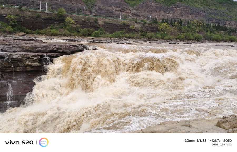 一条河流,两处省界,一脚山西在临汾,一脚陕西至宜川。中国第二大瀑布,世界最大黄色瀑布,如今它就在我的眼前。远处的它平缓温婉,似极了宫廷舞妓;近处的它性格火爆,如猛虎下山。飞速而至,白浪翻涌,可远观,那声势不绝于耳。可下龙洞仰望,那奔腾的气势,无与伦比。激起的水雾,十几米高。