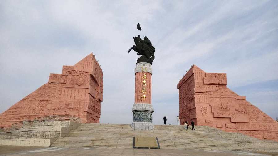 原来,“这”还不是成陵。心情更加激动,也对于前方更多了一份念想。到了地方,高大的牌坊,九十九级台阶。奔马的英雄“铁木真”,就在我们的眼前。威严的身姿,倾诉着英雄的故事;举手的刹那,尽是部落的兴衰。白色的蒙古包,满足了人们对于草原的渴望。坡上的石堆,洋溢着人们对于自然和爱情的向往。
