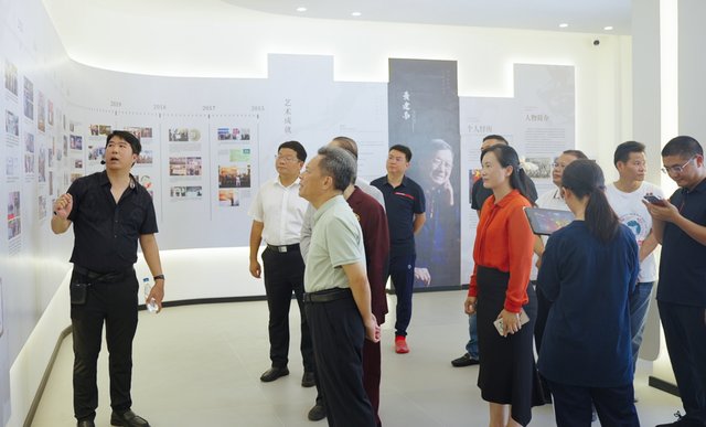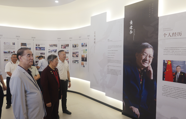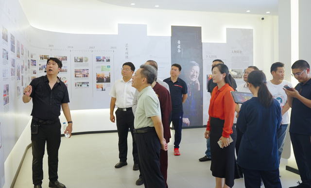 ■领导嘉宾听取黄小虎介绍黄建南艺术成就及作品