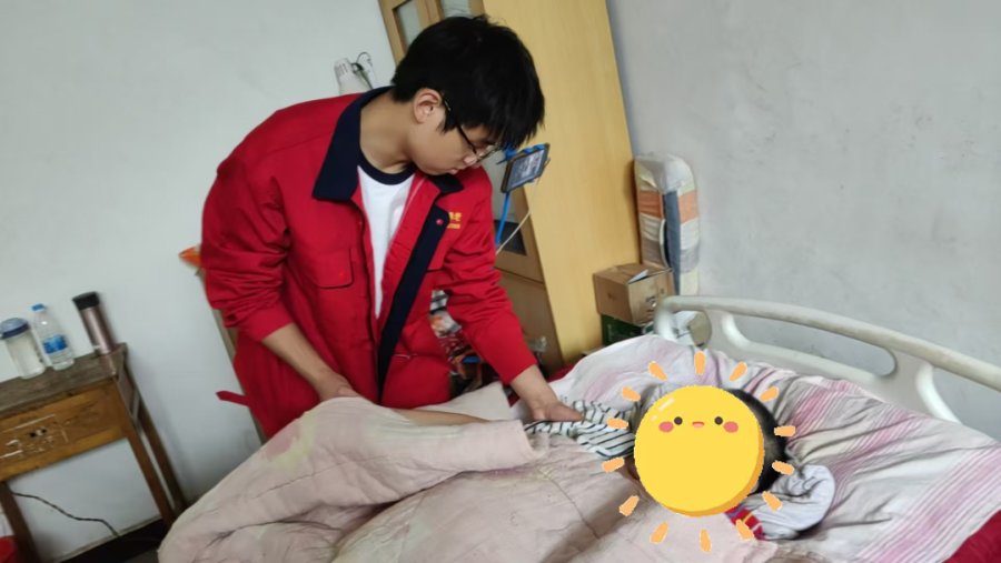 来到刘爷爷家。他因脊椎损伤长期卧床。