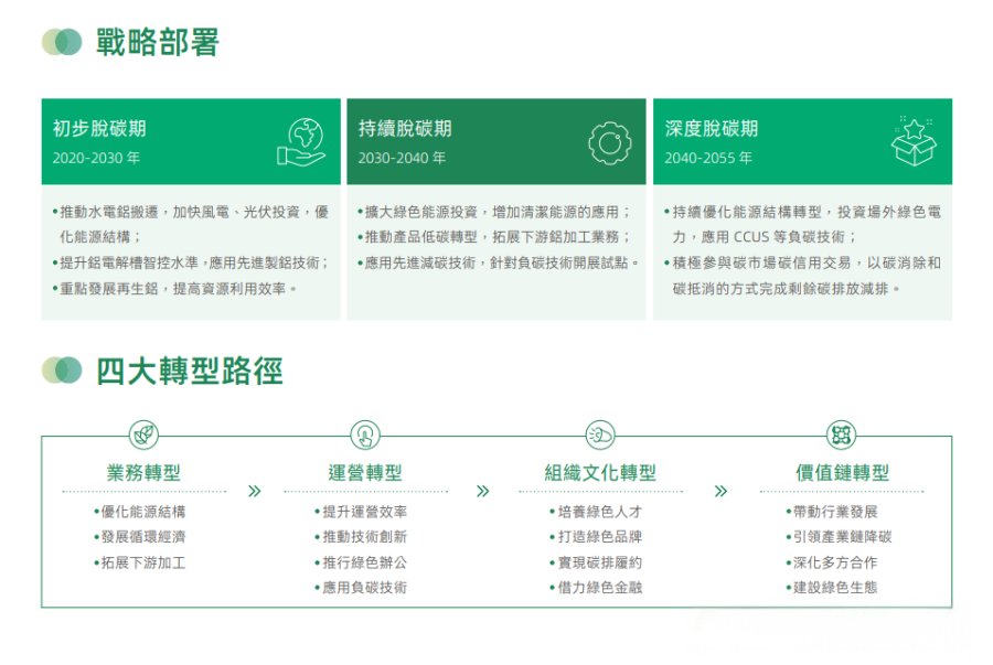 在这条赛道上,中国宏桥同样是率先起跑的“模范生”。其发布的《中国宏桥集团有限公司碳减排行动报告》中,详细规划了“初步脱碳、持续脱碳、深度脱碳”的“三步走”策略。