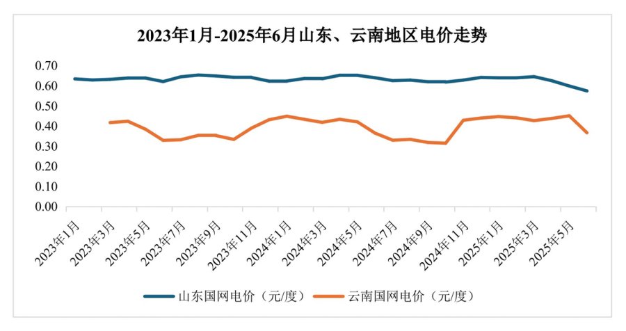 中国宏桥将合计396万吨电解铝产能从山东的火电基地分阶段向云南的水电基地搬迁置换,正是其战略眼光的最佳体现。数据显示,2024年其在云南的电力采购价格为0.40元/度,较山东的0.51元/度低了超过21%。且目前云南地区电价下行速度还超过山东地区。