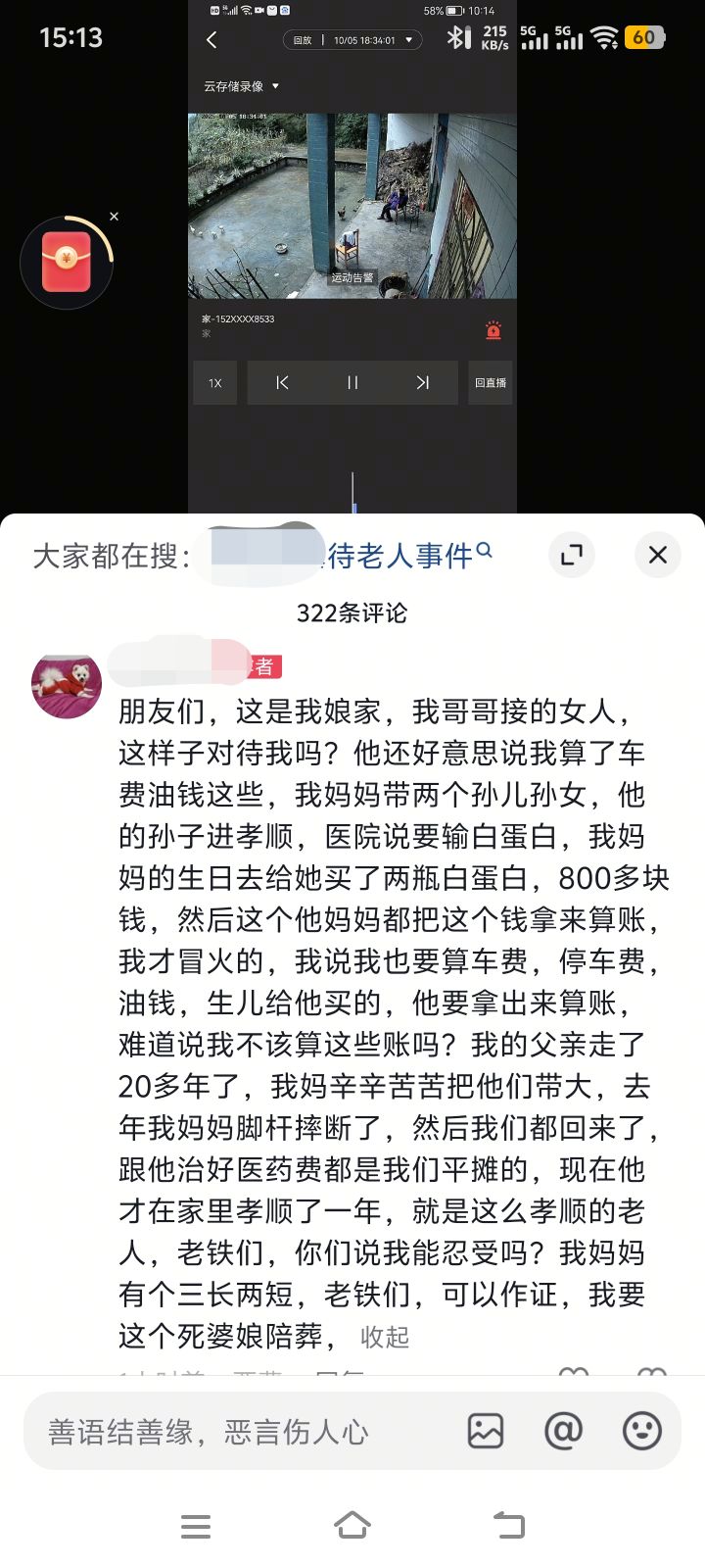 从短视频发布者的描述中,我们能感受到她对母亲遭遇的愤懑。母亲含辛茹苦抚养子女长大,帮忙带孙儿孙女,在生病时子女平摊医药费,可儿媳却在老人刚刚被照顾一年后就如此对待老人,这实在让人难以接受。她觉得自己为家庭付出了很多,在母亲生日买白蛋白等花费被儿媳拿来算账时,心中的怒火被点燃,认为自己算车费、油钱等费用也是理所应当。