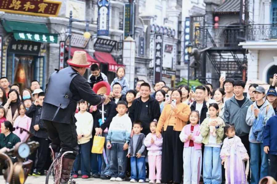 国庆假期,建业电影小镇聚焦沉浸式场景与多元玩法打造,以“奇遇国庆,一路有戏”为主题构建全域演艺矩阵,通过两大王牌剧目,联动四大特色场景,全园区覆盖160场演出,全天轮番上演。
