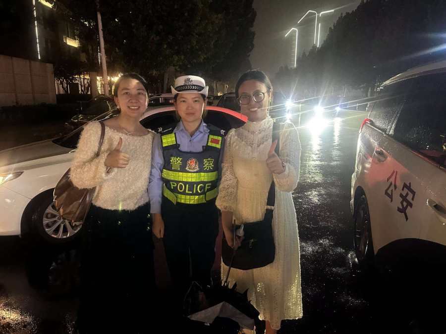 10月3日23时左右,中牟交警八中队民辅警张景坤、焦方臣等人在郑开大道执行日常巡逻任务,当他们巡逻至景观大道交叉口时,发现一女子在向警车招手,便立即停车询问情况。