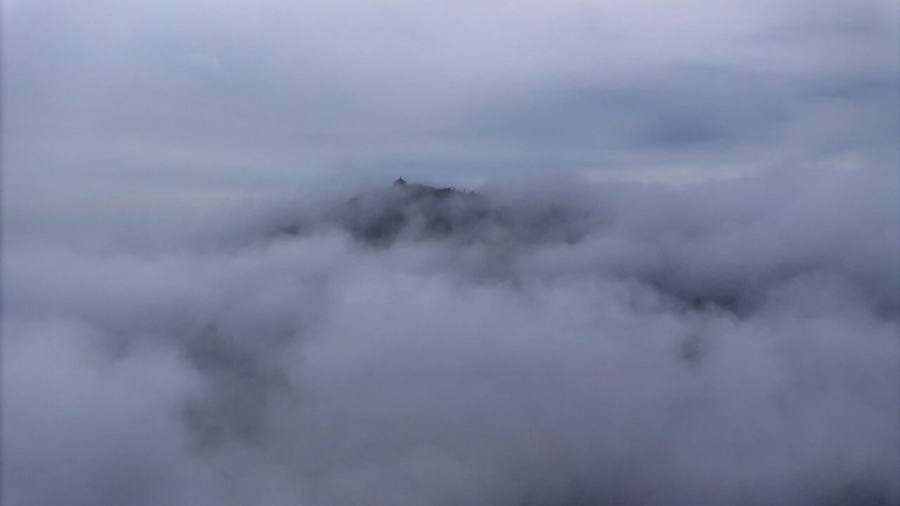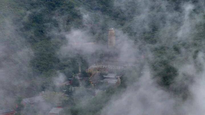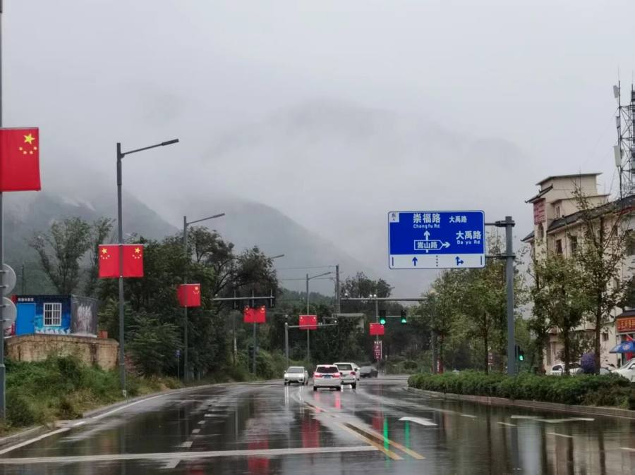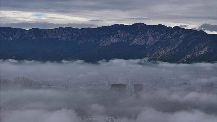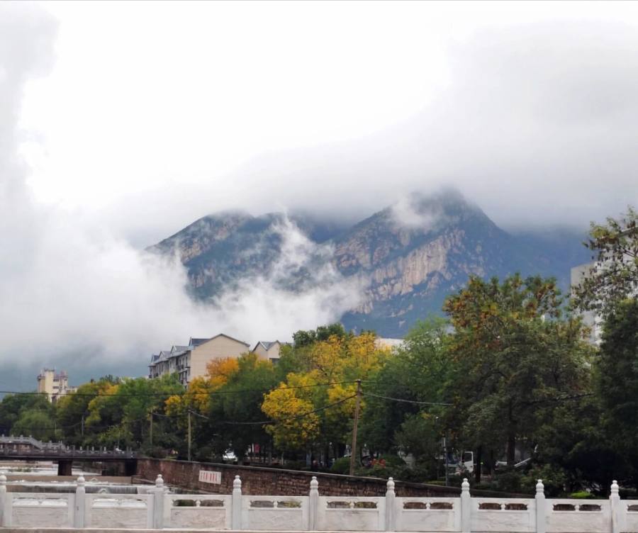山脚下的登封城,也浸在这层柔纱里——楼房在云雾里半隐半现,马路被水汽晕成淡影,竟和嵩山的轮廓织成了一幅虚实交织的画。