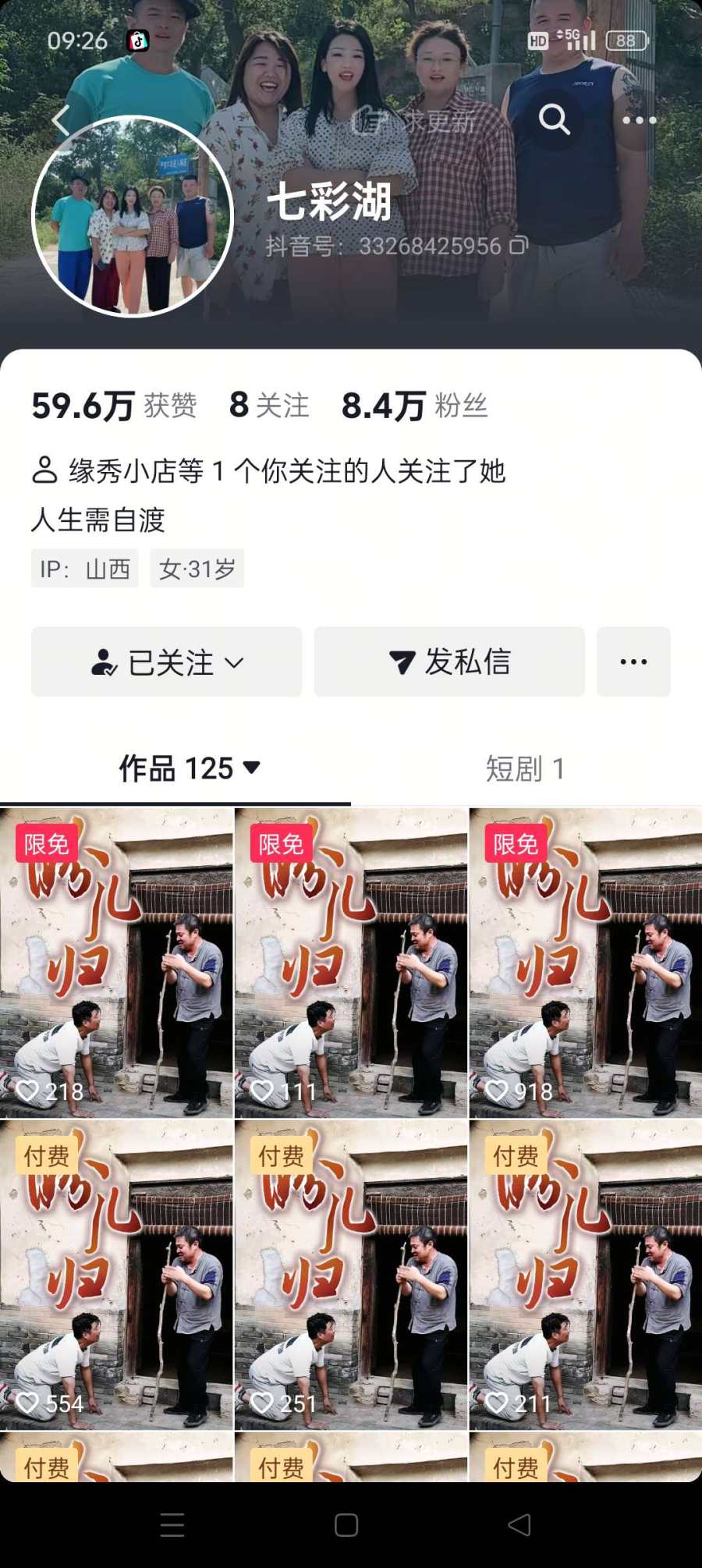 近日,抖音平台上一个名为“七彩湖”的账号凭借其精彩短剧迅速走红,在短短一个月内,粉丝量就突破8.4万,成为了短视频领域的一匹黑马。