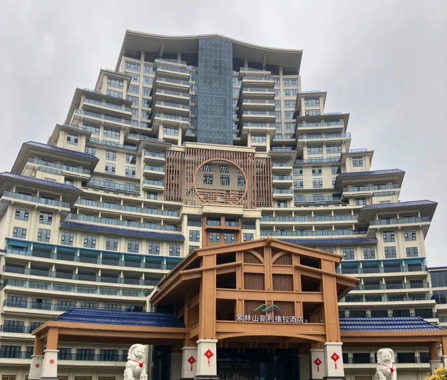 该建筑已经换牌为紫林山豪利维拉酒店,系格美集团2025年在贵州省黔南州打造的五钻商旅度假酒店,专注于为中高端客户提供舒适的住宿和度假体验。
