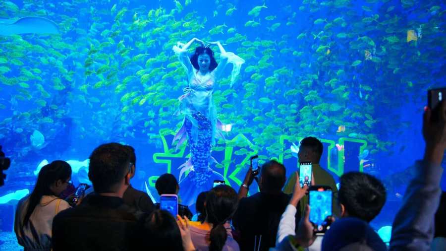 十一黄金周,郑州海昌海洋公园以“山海国潮节”为主题,打造的山海国潮盛宴爆款频出,成功掀起一场全民参与、全龄同乐的打卡热潮。园区精心策划的国风人鱼演出《山海洛神赋》,以鱼戏莲叶间的诗意画卷,被央视持续聚焦。“杜若溪在海洋公园带娃、河南企鹅吃上了中秋月饼、白鲸现在连大朋友都开始吓了”等多个话题持续霸榜热搜TOP1,带动景区客流飙升,成为假期出游的热门打卡地。