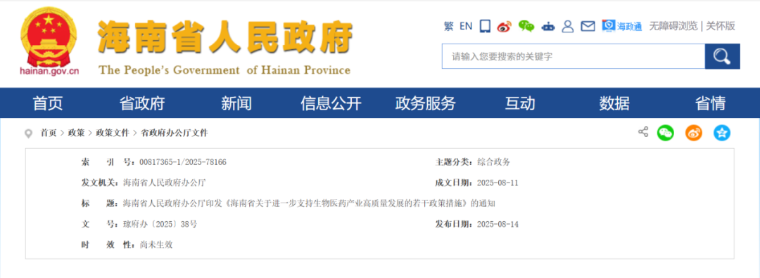 海南省关于进一步支持生物医药产业高质量发展的若干政策措施