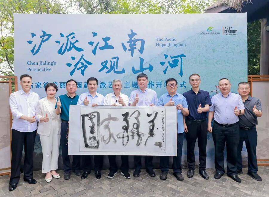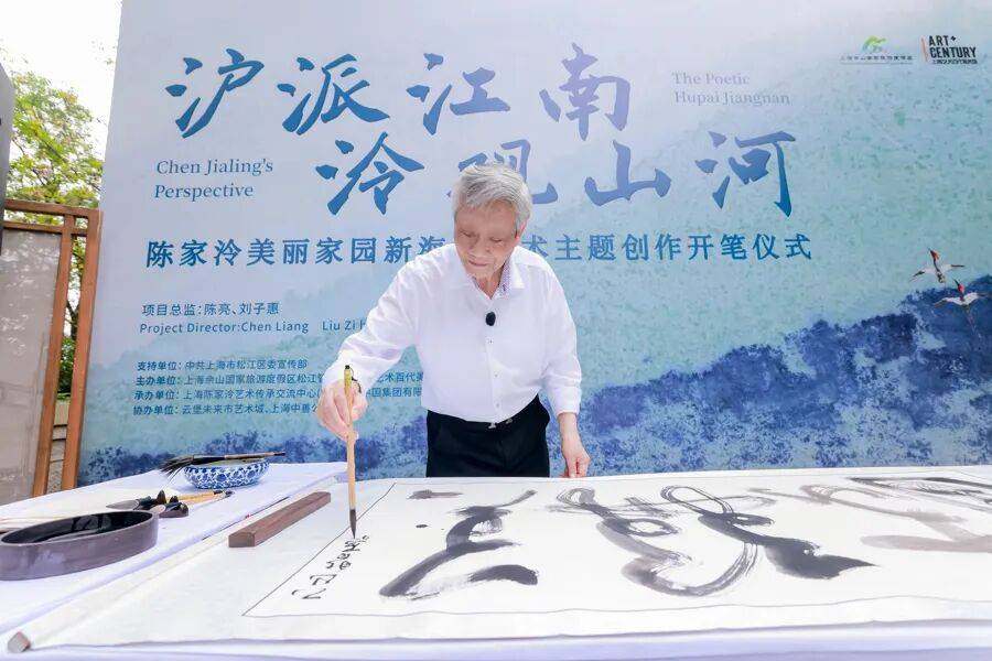 这是由中共上海市松江区委宣传部支持,上海佘山国家旅游度假区松江管委会、上海艺术百代美术馆联合主办的“沪派江南·泠观山河——松江”陈家泠美丽家园新海派艺术主题创作开笔仪式。以“笔”为媒,以“山”为魂,这标志着陈家泠围绕“美丽家园”主题的系列创作正式拉开帷幕。