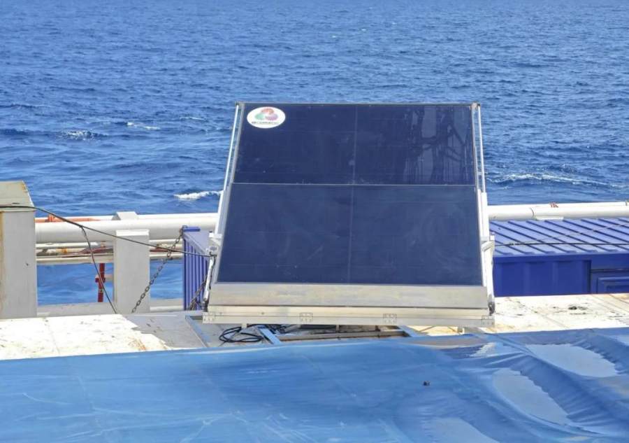 紧接着,科考船甲板面的光伏发电装置将太阳能转化为电能发电并传输到海底,引燃气源获取“源火”。