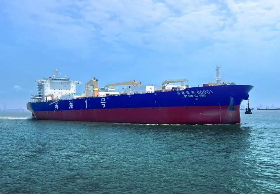 中船黄埔文冲建造的全球第一艘专门养殖三文鱼的工船“苏海1号”船已在今年6月交付使用。