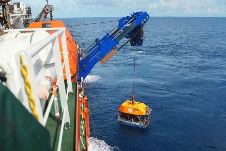它驶抵南海北部海域,利用大型吊机将“海马”号深海遥控潜水器(ROV)精准下放至1522米深的海底。