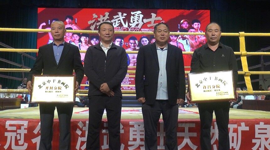 赛前环节亮点纷呈,北京中干书画院副院长、河南榜书协会副主席、河南兰亭书画院院长胡红军发表重要讲话,强调赛事对传承武术文化、搭建竞技平台的重要意义。随后举行了由北京中干书画院为许昌分院、开封分院授牌仪式,更为赛事增添了文化底蕴与发展动能。