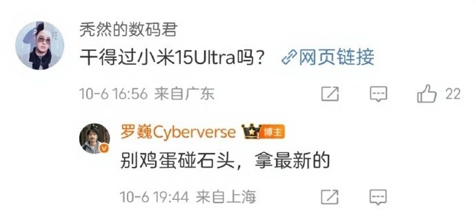 这并非罗巍首次引发争议。9月26日,他曾怒怼vivo“录中美拍”功能抄袭荣耀Magic4同款功能,称“名字都懒得改”,并与质疑网友激烈互怼,甚至爆粗口。此前他还内涵华为Pura80“一镜双目”设计华而不实,公开宣称“荣耀影像三年之约,将甩友商一条街”。