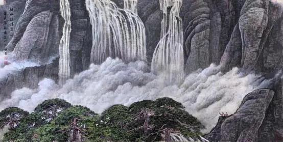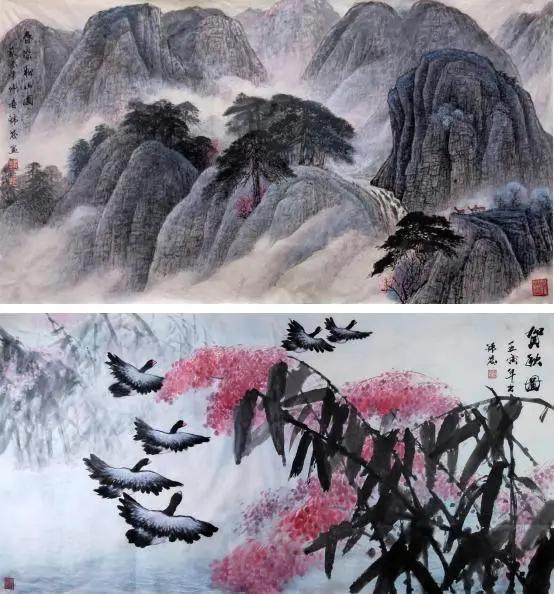 2012 年应邀为武警部队广东天鹿湖会议中心大堂绘制十余米长的巨幅山水画《锦绣山河》,并同时举办"祖国颂、李锦发国画展"的个人画展。