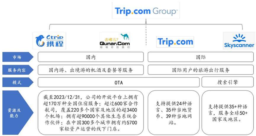 当前走在最前面的是携程,自2019年提出"全球化(Great Quality)"和"高品质(Globalization)"的"G2"战略,将海外业务作为最核心的增长驱动力。其海外布局以Trip.com为核心平台(聚焦亚太市场),辅以Skyscanner(全球机票搜索平台),强调一站式服务、本地化运营和供应链复用,做真人客服和交叉服务。