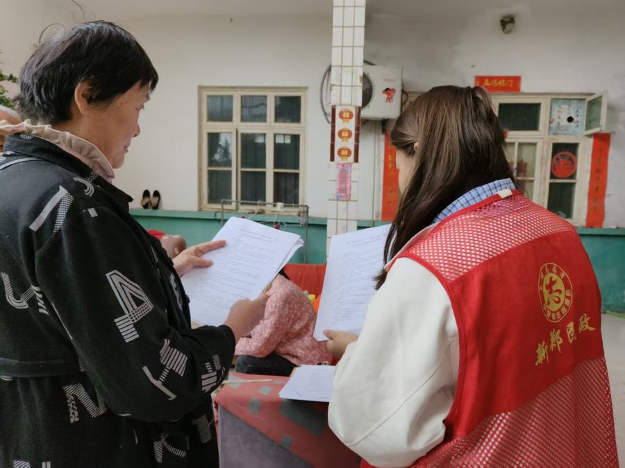 在辛店镇、具茨山管委会、梨河镇等,乐善社工借助全市正在开展的困境儿童评估工作契机,向儿童督导员、儿童主任、村干部、困境儿童及其家长、村民们发放了《新郑市民政局2024年“物质+服务”项目2025世界精神卫生日宣传——人人享有心理健康服务》宣传单页,白纸黑字、清晰明了地向大家介绍了关注心理健康的重要性,提醒大家注意“心理健康是我们思考、表达情感、与他人互动、应对压力并作出选择的基础”。