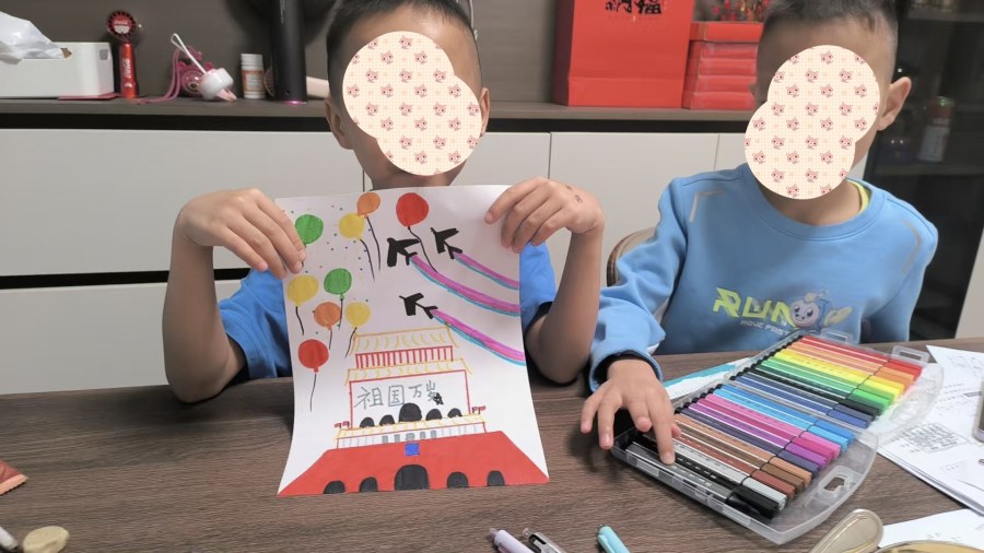 画笔挥舞,童心绽放。一幅幅童趣盎然的画作成为献给祖国母亲的独特礼物——庄严的天安门、鲜艳的五星红旗、展翅的和平鸽,每一笔色彩都诉说着对祖国的热爱。孩子们灿烂的笑脸,比任何礼物都更加珍贵。而与国旗合影的环节,更是将活动推向高潮。镜头前,孩子们在不同的场景中与国旗亲密同框,用最纯粹的方式表达对强大祖国的自豪。