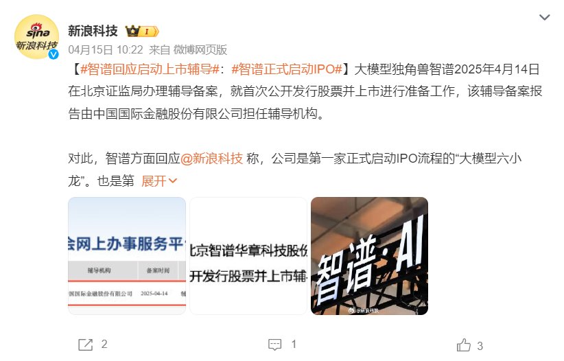 今年4月,据北京证监局网站上显示,智谱AI正在接受中金上市辅导,预计2025年10月完成上市辅导,后续可能会向A股递交招股书。智谱AI也成为第一家正式启动IPO流程的“大模型六小虎”。
