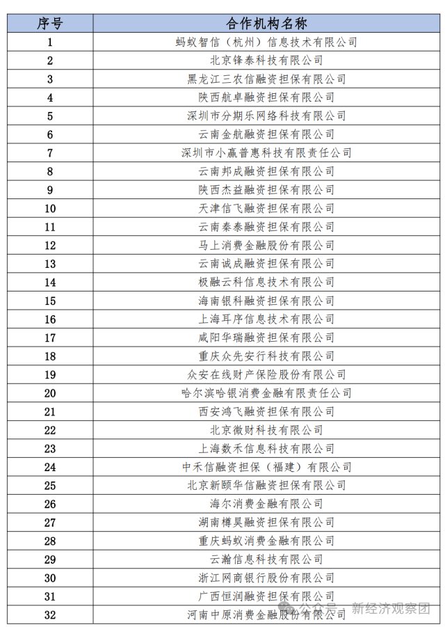 新经济观察团不完全统计发现,截至10月10日,已经有共计33家股份行、城商行、民营银行以及外资银行公布了助贷合作方名单。大部分机构合作方集中于蚂蚁、京东、字节跳动等头部流量平台以及主流助贷公司,增信机构主要涉及地方融担公司和助贷公司的关联主体。