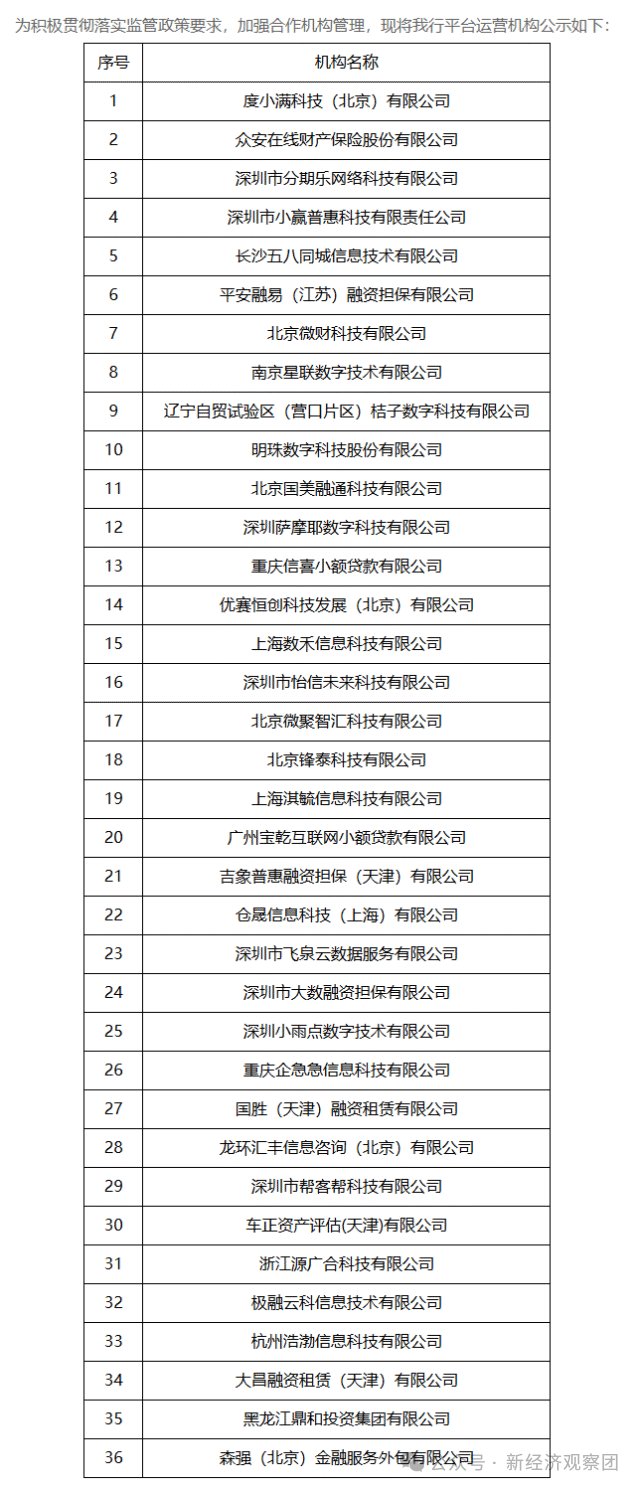 蓝海银行的互联网助贷业务合作机构包括36家平台运营机构和36家增信服务机构。
