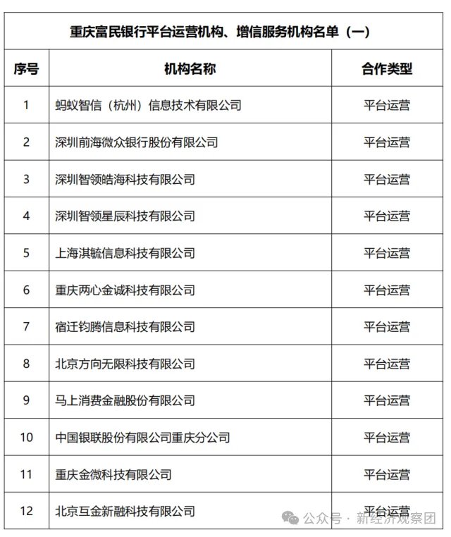 富民银行的互联网助贷业务合作方包括12家平台运营机构和18家增信服务机构,主要是头部互联网公司,以及助贷公司关联的融担机构。