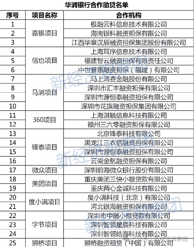 华润银行合作机构共10个项目,每个项目包括助贷机构以及融担公司。合作项目包括字节、微众、360等规模较大的头部平台。