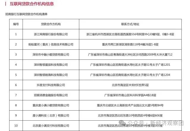 截至目前,招行已与约15家科技公司和消费金融持牌机构建立稳定合作关系,合作方几乎囊括了国内所有主流互联网大厂,包括蚂蚁集团(及其旗下蚂蚁智信、网商银行等)、字节跳动(抖音平台及旗下金融科技板块)、美团、度小满(百度系),以及招联消费金融等具备强大场景与数据能力的机构。