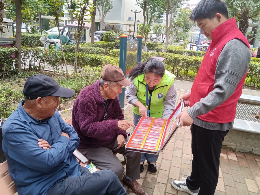 活动现场,禁毒社工与志愿者结合居民活动状态灵活开展宣传,看到在健身区锻炼的居民,便主动上前递上宣传单页,对照单页上的图文讲解传统毒品的危害;遇到围坐打牌的居民群体,则拿出仿真毒品模型,直观展示“奶茶包”“巧克力”“邮票”等新型毒品的伪装形态,提醒大家“日常零食也要多留心,陌生物品别乱碰”。