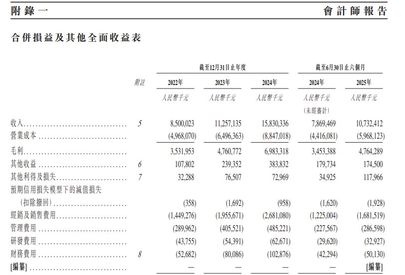 此外,该公司毛利率也逐年稳步上升,2022 - 2024年毛利率分别为41.6%、42.3%、44.1%,2025年上半年为44.4%。