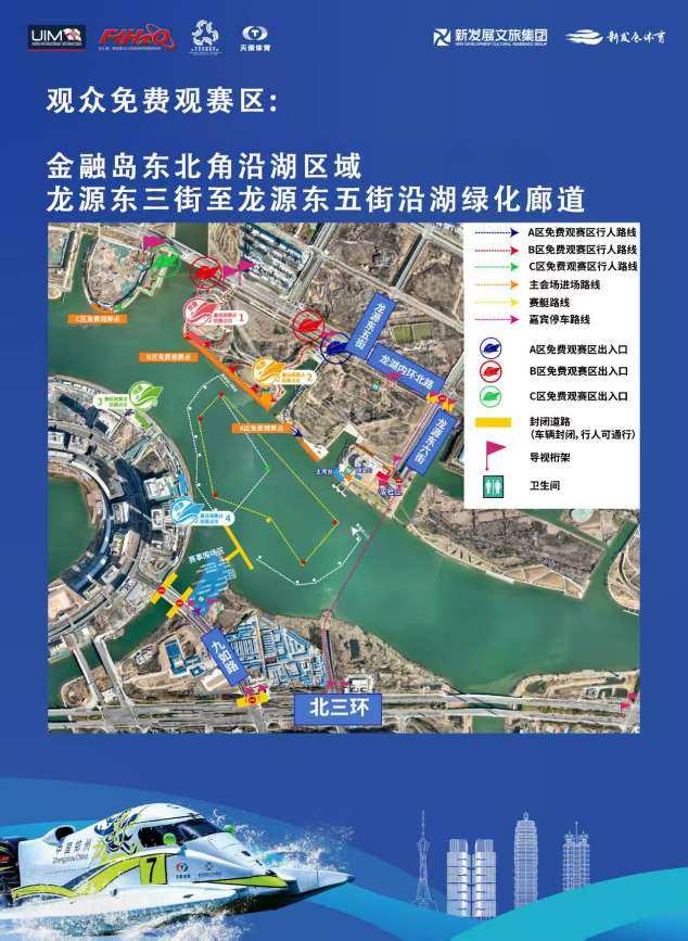 ①A、B、C免费观赛区:龙源东三街至龙源东五街沿湖绿化廊道。