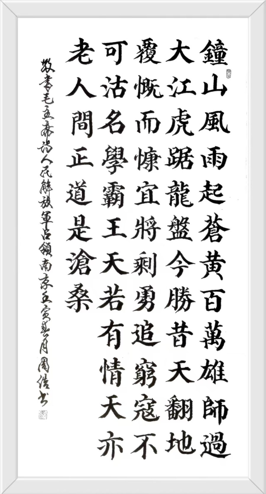 风格的形成:在不断的探索与实践中,周浩逐渐形成了自己独特的艺术风格。他的作品,既有楷书的端庄严谨,又不失行草的流畅洒脱,更融入了个人的情感与哲思。这种风格,既是对传统书法的致敬,也是对个人艺术追求的体现。在“纪念红军长征胜利80周年”师生书法竞赛中,他的软笔书法作品荣获一等奖,正是对其艺术风格的一种肯定。