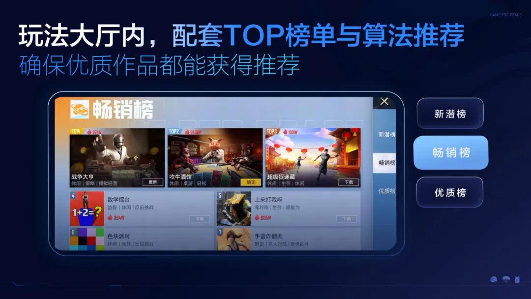 在端内流量层面,平台设置多层级曝光资源:一是核心入口触达,通过和平精英大厅模式广告图、弹窗通知,游戏端内全流量曝光已突破8000万;二是专题化运营,在活动中心设置绿洲启元专属板块,结合日常周期性活动;三是玩法大厅推荐,对优质新游给予首屏推荐位,同时通过实时游玩榜单兴趣推荐算法,根据玩家偏好推送内容。