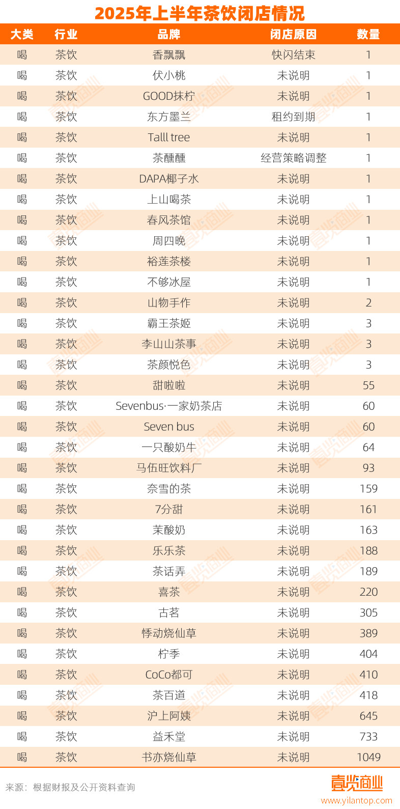 从整体来看,闭店潮集中在两类品牌:一类是以烧仙草、酸奶为代表的单品类品牌,因品类热度下降而整体退场;另一类是中腰部综合茶饮品牌,在价格战与头部品牌下沉双重压力下被迫收缩阵地。