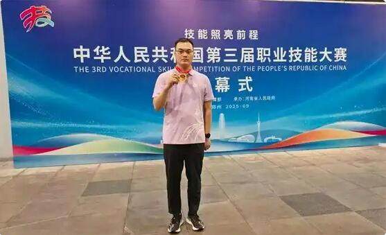 他的双手曾终日与金属门窗为伴,如今却能精准编程控制工业机器人;他曾因“不想一眼望到头”而迷茫,此刻却在全国最高领奖台上熠熠生辉。这一刻,所有深夜的灯光、山间的彷徨、指尖的伤痕,都凝聚成了胸前金牌那沉甸甸的重量。新乡职业技术学院选手张国佗,用不懈奋斗完成了从工匠到金牌选手的蜕变,成为无数职校学子心中的“灯塔”。