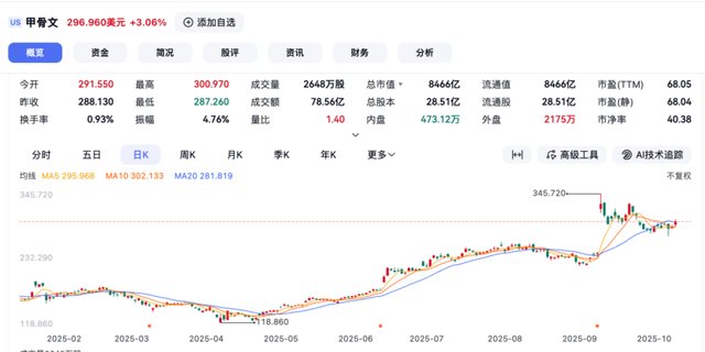 2025年10月6日当天,AMD股价开盘后直接跳涨超过30%,最高触及215美元每股,最终收涨23.71%。