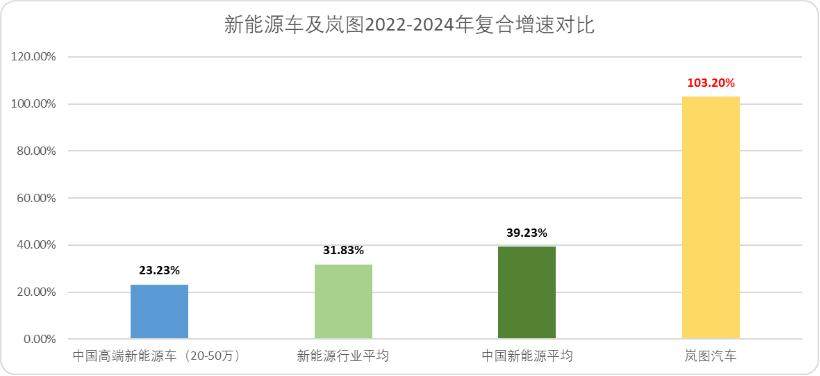 图:不同口径下新能源车复合增速与岚图对比,来源:灼识咨询,锦缎测算