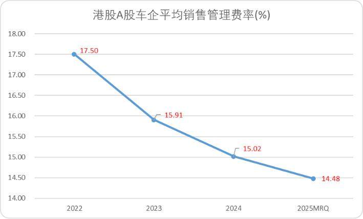 图:港股A股车企销售管理费率趋势,来源:Choice金融客户端
