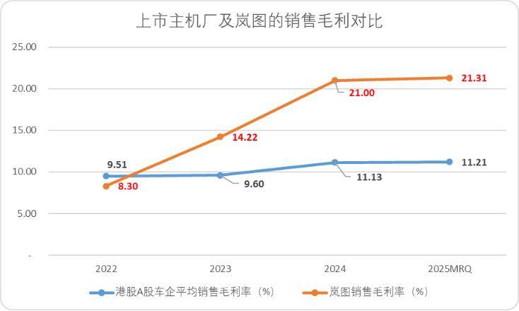 作为制造业集大成行业,销量增速不仅意味着营收口径优化,整车的成本也会明显改良,这一点也集中体现在了岚图汽车的盈利能力上。