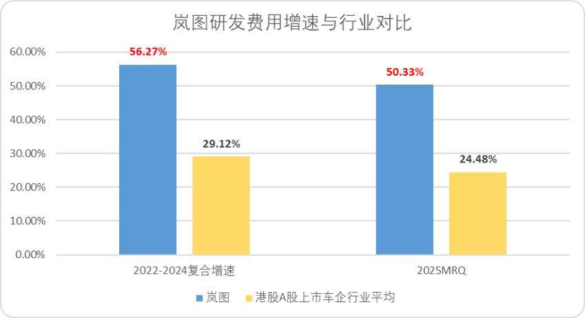 图:岚图研发增速与行业对比,来源:Choice金融客户端
