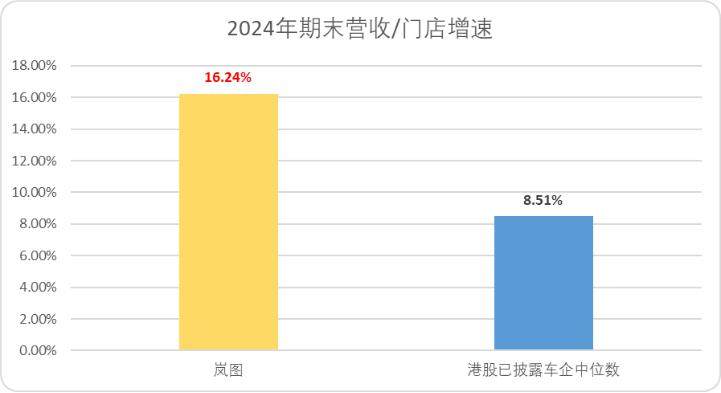 可不要小瞧岚图渠道布局建设能力,我们统计了港股上市的新能源车企2024年平均店销增速(营业收入/已公开期末门店数量),岚图2024年销售网络增速接近港股上市已披露车企中位数的两倍。