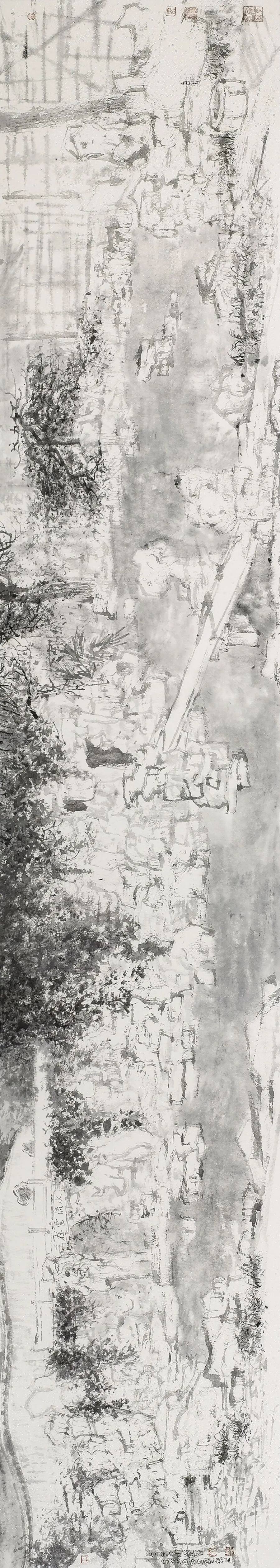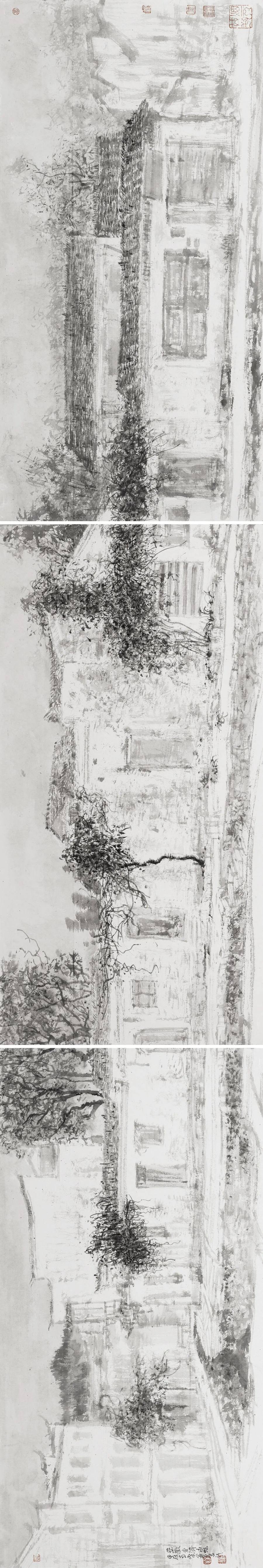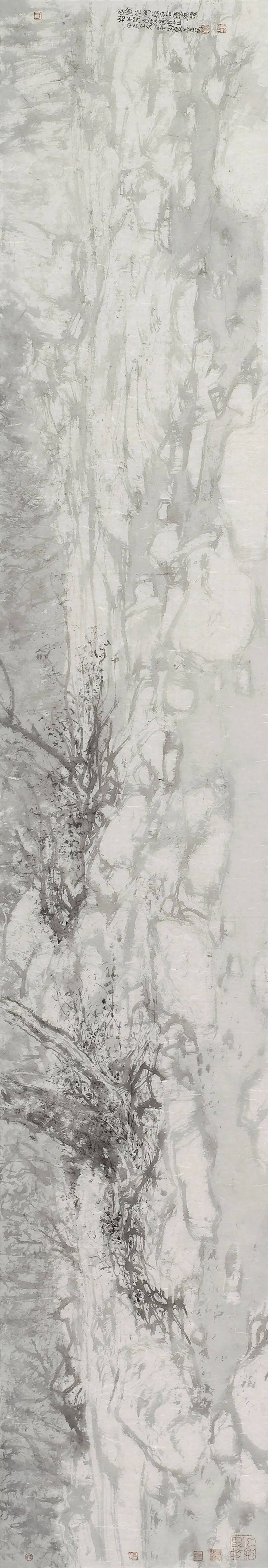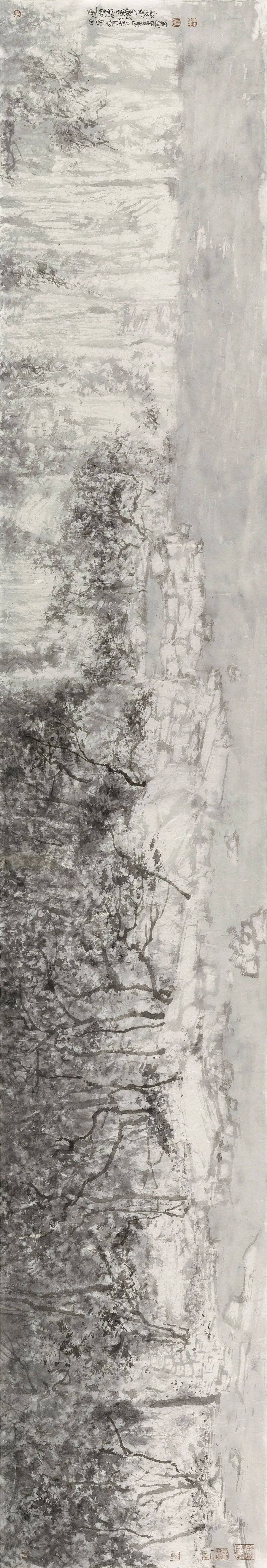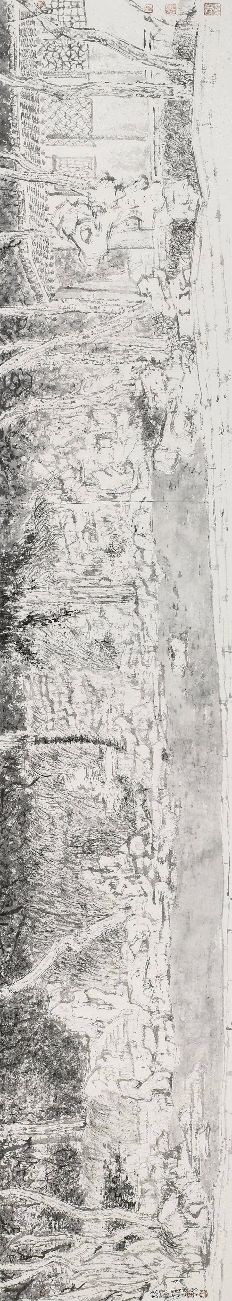董金良的山水画没有沿袭传统图式,却能承接传统精神,以山川外在之“景”写出画家内心之“灵”;亦不是用素描或者西画的诸多方式消解山水画笔墨意趣的核心价值,却能借鉴现代艺术的形式构成化解传统山水程式化的桎梏和羁绊,从二者之间董金良找到了属于自己的一方天地、一条大道。作为相知好友,我在他的画中看到了属于这个时代的山水图景,看到山水画所应走的方向,或许不是唯一,但令我憧憬他的未来。